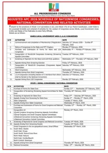 The All Progressives Congress (APC) has released nomination fees for its elective posts ahead of its 2026 Congresses and National Convention.