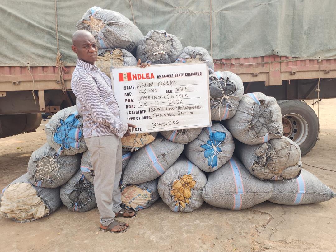 In Anambra state, NDLEA operatives on Wednesday 28th January intercepted a cement truck at Upper Iweka Onitsha, heading to Nkpor. A search of the trailer revealed that bags of cement were used to conceal 345.2kg skunk owned Abum Okeke, 42, who was one of the three occupants of the truck at the time of arrest.