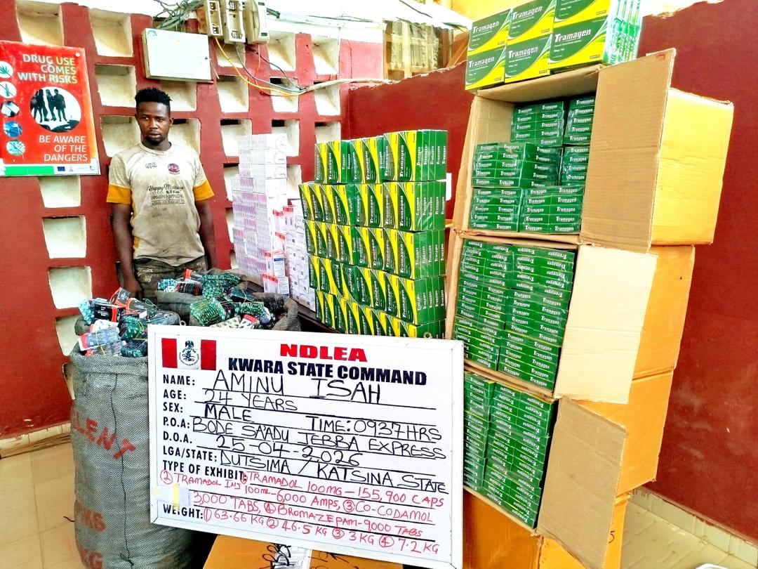 The latest seizure of captagon, which street value costs as much as $25 a pill, was made on Tuesday 21st April 2026 when NDLEA operatives on patrol along Bode Saadu road, Kwara state intercepted a trailer conveying passengers. A search conducted on one of the passengers, 33-year-old Nasiru Mu’azu led to the recovery of 10 packs of captagon consisting of 10,000 pills and nine packets of Tapentadol 250mg.