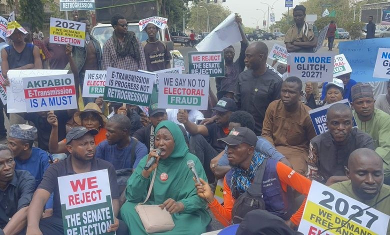 Due to the controversies surrounding the Senate’s stance on the electronic transmission of election results, protesters stormed the National Assembly Complex’s entrance gate in Abuja on Monday.